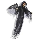 Add this dreadfully delightful demon to your haunted house. His red light-up eyes flash, he recites frightening phrases, and flaps his wicked wings. Arrives ready to hang. Requires four AA batteries (not included). Try outwitting our motion-activated 5-ft. Animated Winged Reaper as he recites six sinister phrases. This macabre character has all the right features: skeletal face and hands, posable arms, flashing red eyes, flapping wings, and flowing black garments. He's sure to create a scene so frightful – partygoers and trick-or-treaters are sure to have some wicked fun. . . . .You will happy for reasonable price and quality. Great!!! The customers is confirm this system Animated Halloween Winged Reaper - Halloween Decorations and Decor - Grandin Road is low price with good quality for this Halloween.